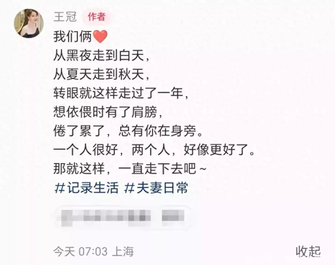 值得注意的是,她的官宣文里还带了一个标签“夫妻日常”。很显然,她已经结婚了。